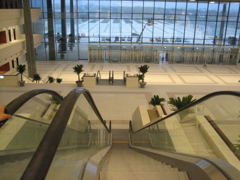 – Tòa nhà trung tâm có diện tích sàn khoảng 60.000m2, chiều cao hơn 53m. Phòng họp chính có qui mô 3.747 chỗ ngồi có thể ngăn được thành hai phòng riêng biệt; một phòng tiệc lớn phục vụ được 1.000 thực khách; một phòng tiệc cấp cao, hai phòng họp cấp cao; một trung tâm báo chí; khu vực triển lãm, khu vực cửa hàng, trung tâm kinh doanh, giao dịch thương mại, khu văn phòng quản lý, điều hành; khu vực bếp phục vụ; phòng phiên dịch.