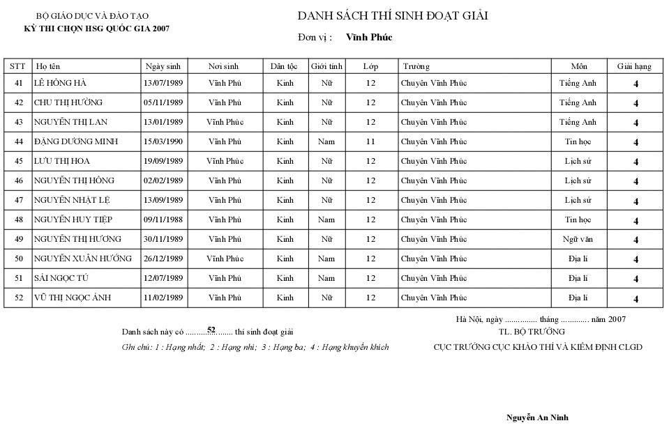 Đáng chú là môn toán, cả nước có 2 giải nhất thì Vĩnh Phúc một, môn địa lý cả nước chỉ có một giải nhất thôi, Vĩnh Phúc đó nhá