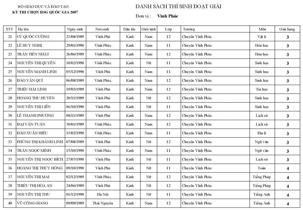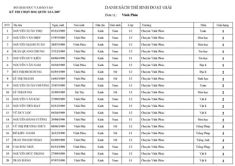 Đáng chú là môn toán, cả nước có 2 giải nhất thì Vĩnh Phúc một, môn địa lý cả nước chỉ có một giải nhất thôi, Vĩnh Phúc đó nhá