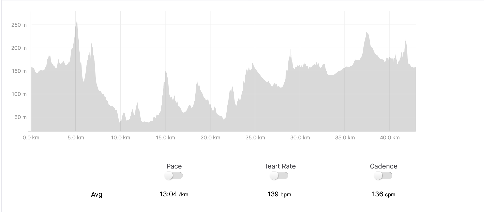 Quên chưa kể, đây là gain trong file mà btc gửi các runner, nhìn thì mình rất ghê đoạn sau 30km, leo dốc khiếp thế kia.