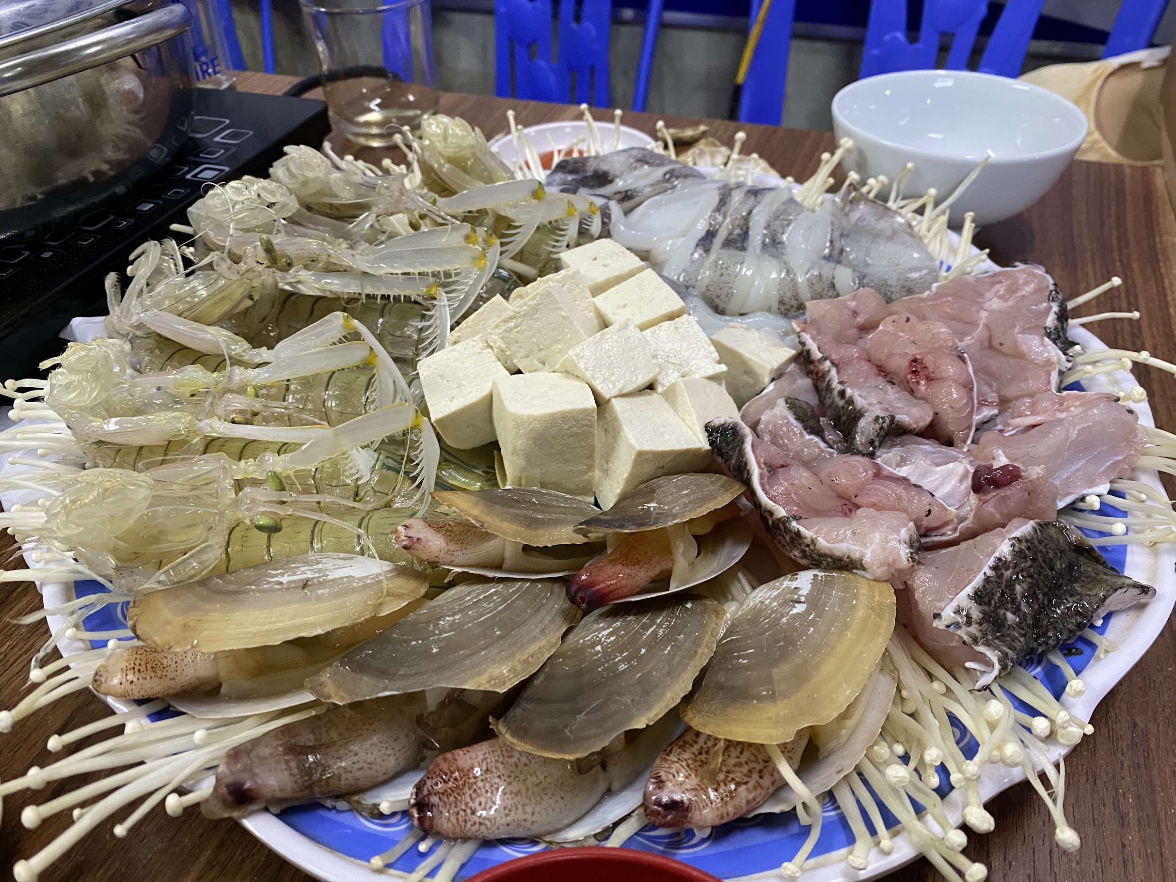 Đi ăn tối ở cách khách sạn 11km, cửa hàng quen của thằng Ân, tiền taxi đắt lòi tòi phòi, nhưng vì “ăn xong xem pháo hoa” nên đành okie. Nhưng nhà hàng ăn rất ổn, đồ ăn tươi ngon mà giá cả phải chăng.