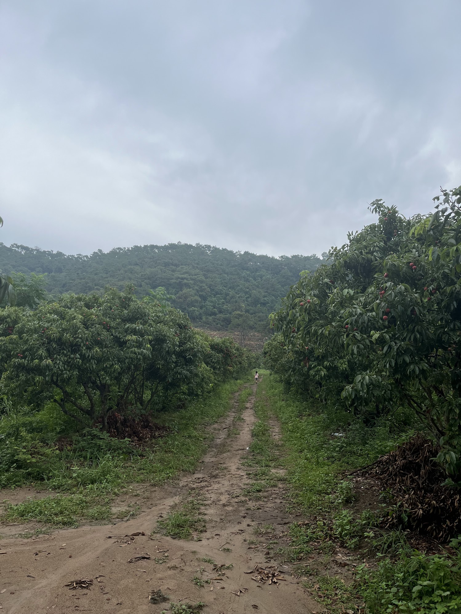 mình xin nghỉ phép cả ngày, đưa bố mẹ, 4 đứa trẻ con về vườn vải ở Chí Linh chơi.